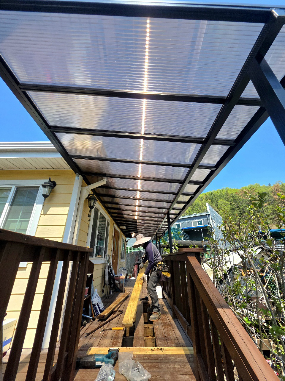 A형 데크픽스 | 나무 데크가 썩어 특허명품 데크픽스 시공하여 데크 손상을 방지하였습니다, 2중으로 된 튼튼한 골조 !! 색상이 변하지않는 불소…
